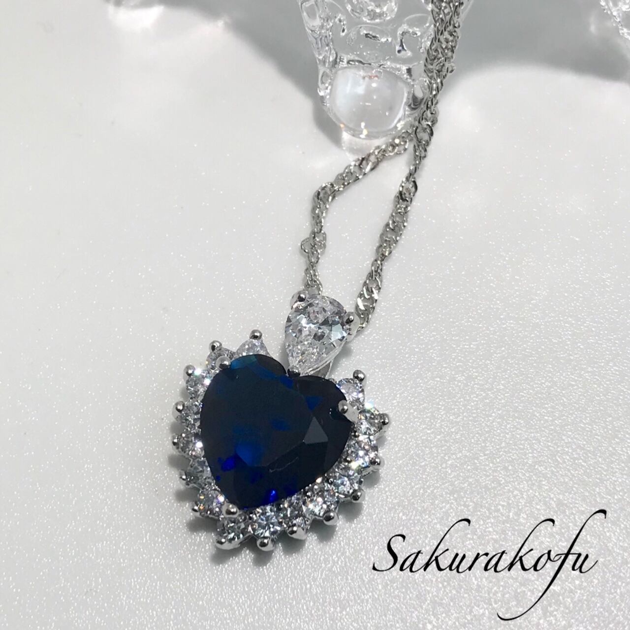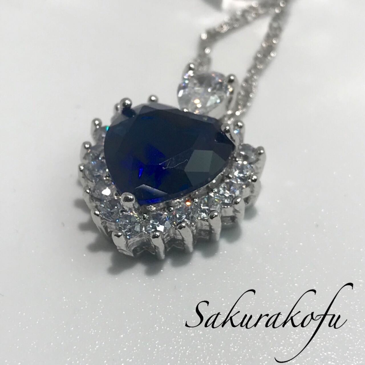 D006 送料無料 レディース ネックレス アクセサリー ブルー ハート Sapphire Necklace
