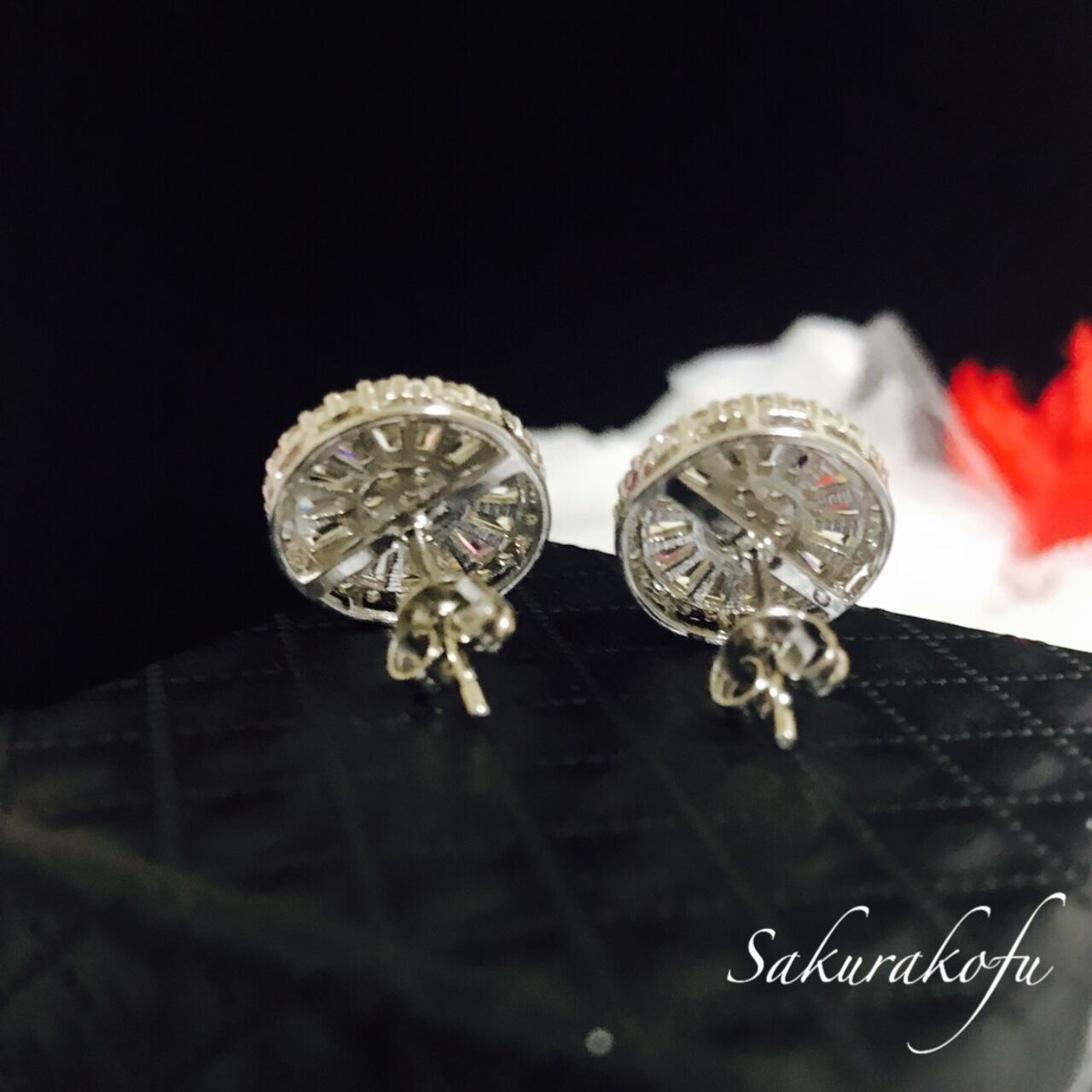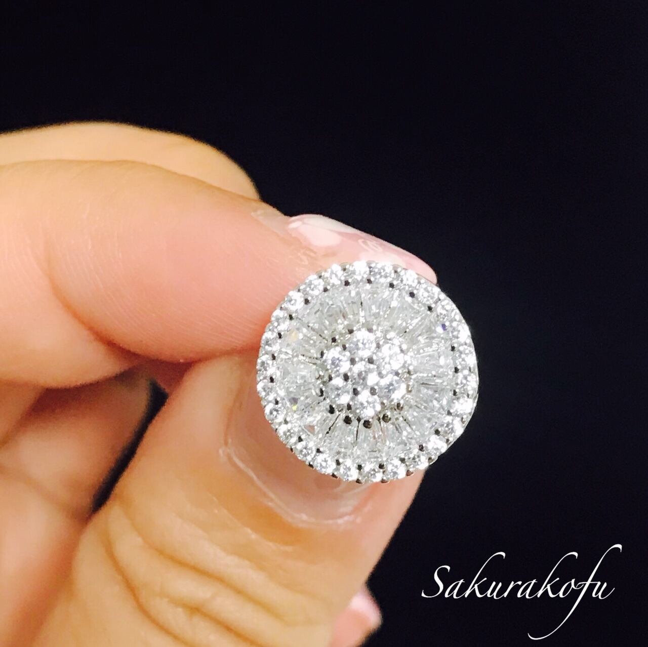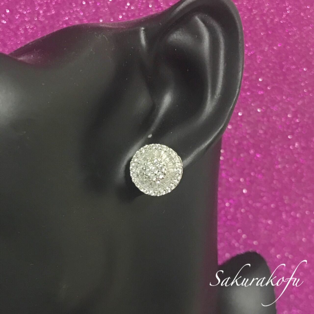 ホワイトサファイアのビジューピアス。