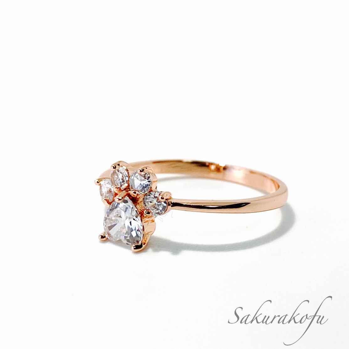 D014 送料無料 レディース リング 指輪 肉球リング ピンクゴールド ホワイトサファイア 人気リング アクセサリー