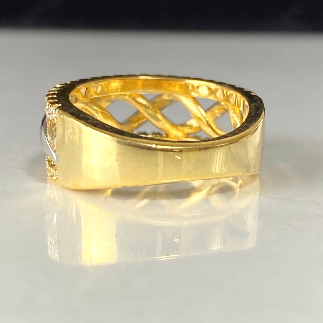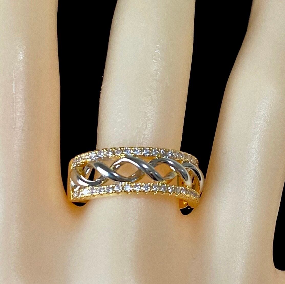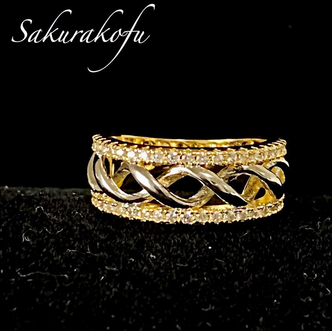D021 ツートン ウェーブ AAAキュービック レディース リング