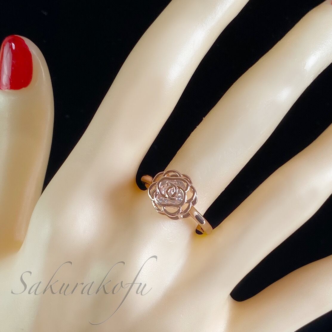D050 キュービック ローズ フラワー レディース 指輪 人気