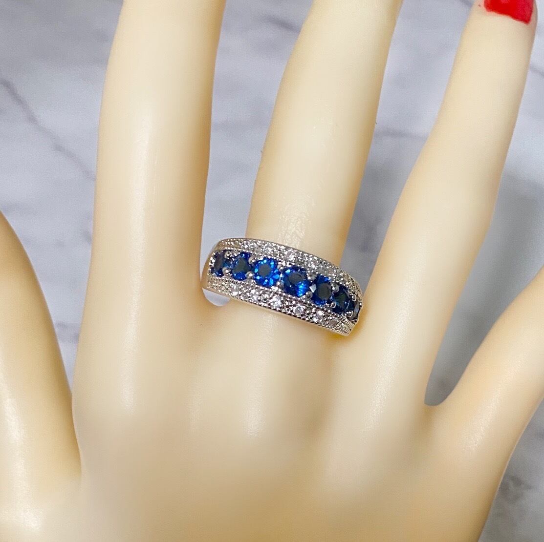 D051 サファイア キュービック ゴージャス パヴェリング レディース 指輪