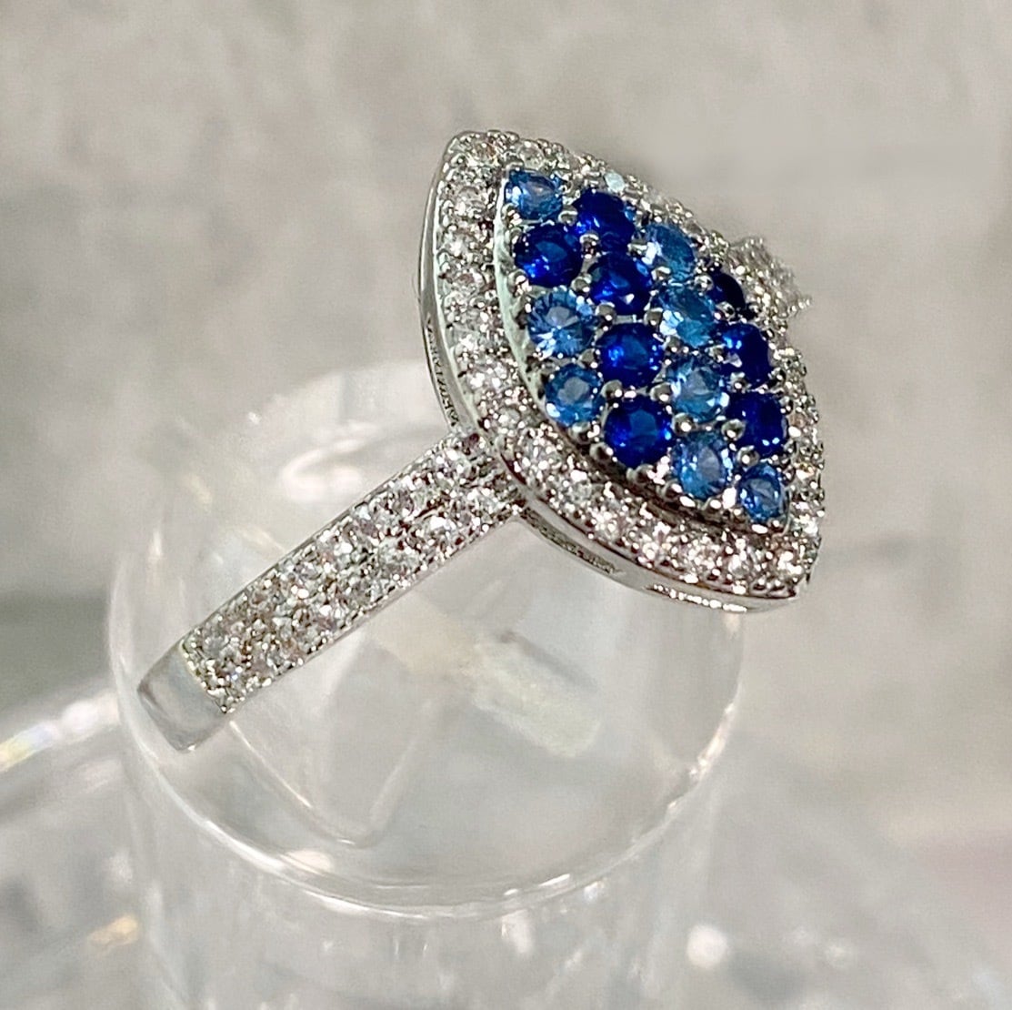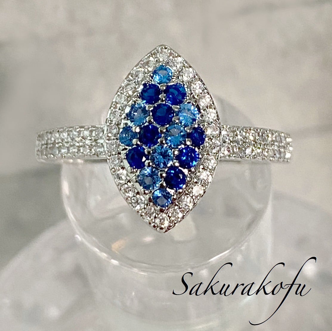 D053 グラデーション サファイア マーキス シルバー リング 指輪 レディース