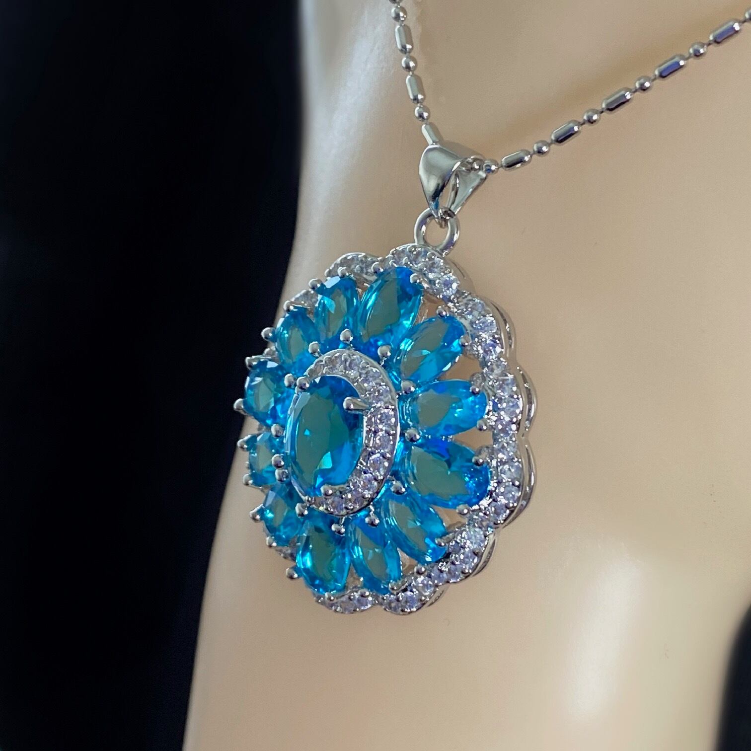 ブルートパーズとキュービックをふんだんに使った豪華なネックレス。