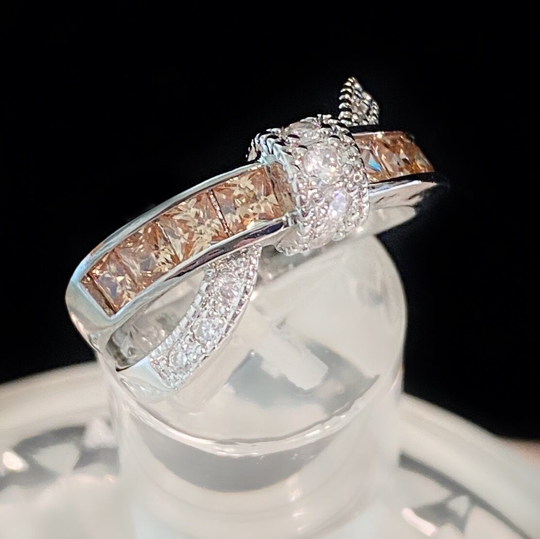 D065 送料無料 指輪 リング 人気デザイン シャンパントパーズ クロス リボン