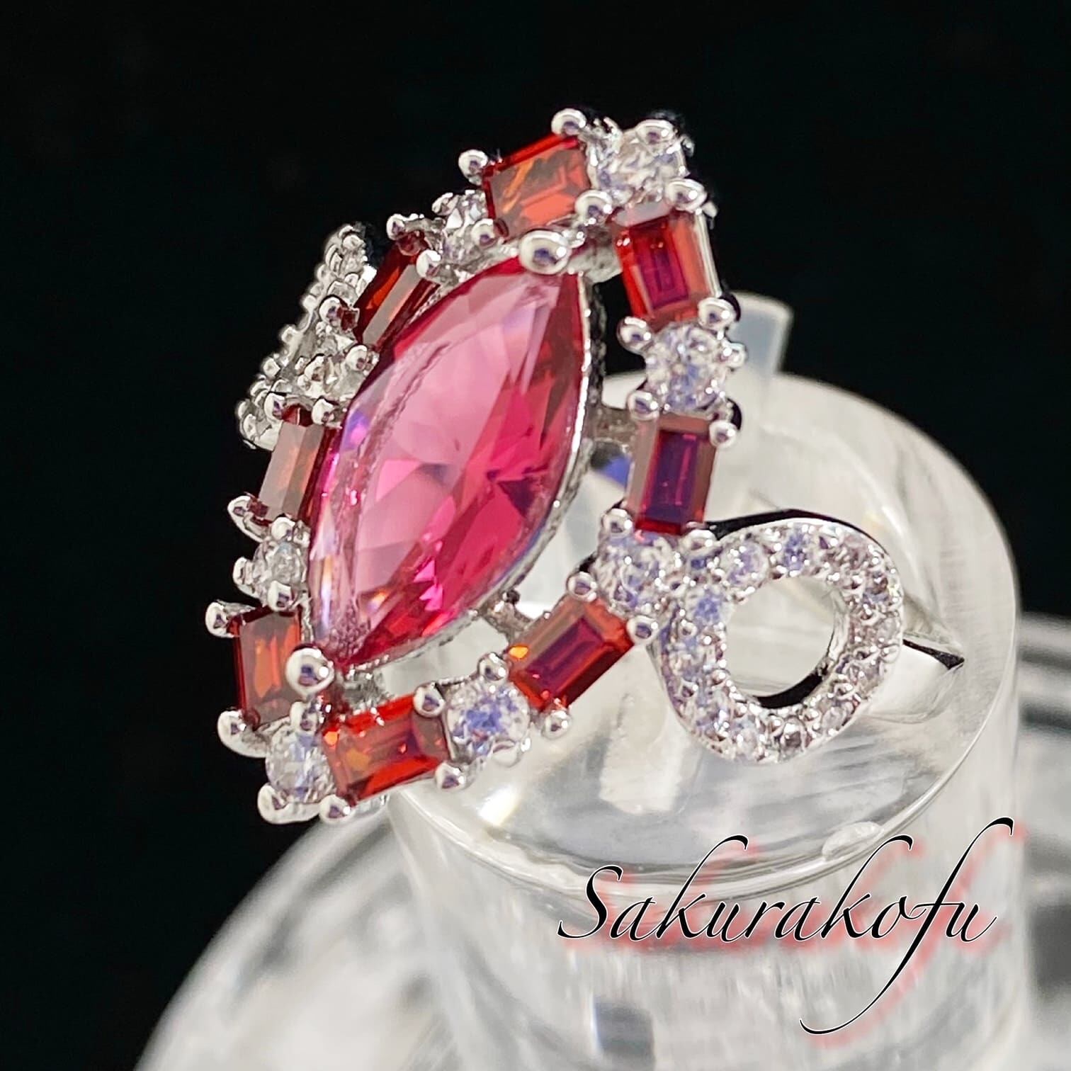 D059 指輪 リング マーキス ガーネット おおぶりリング 人気 デザイン シルバー
