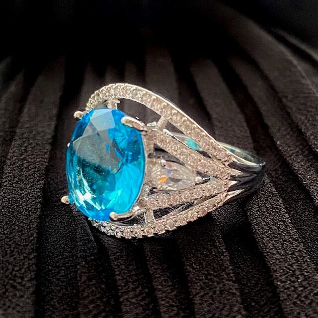 D087 即納☆送料無料 人気デザイン ブルートパーズ 大粒ストーン ネオンブルー レディース 指輪 リング