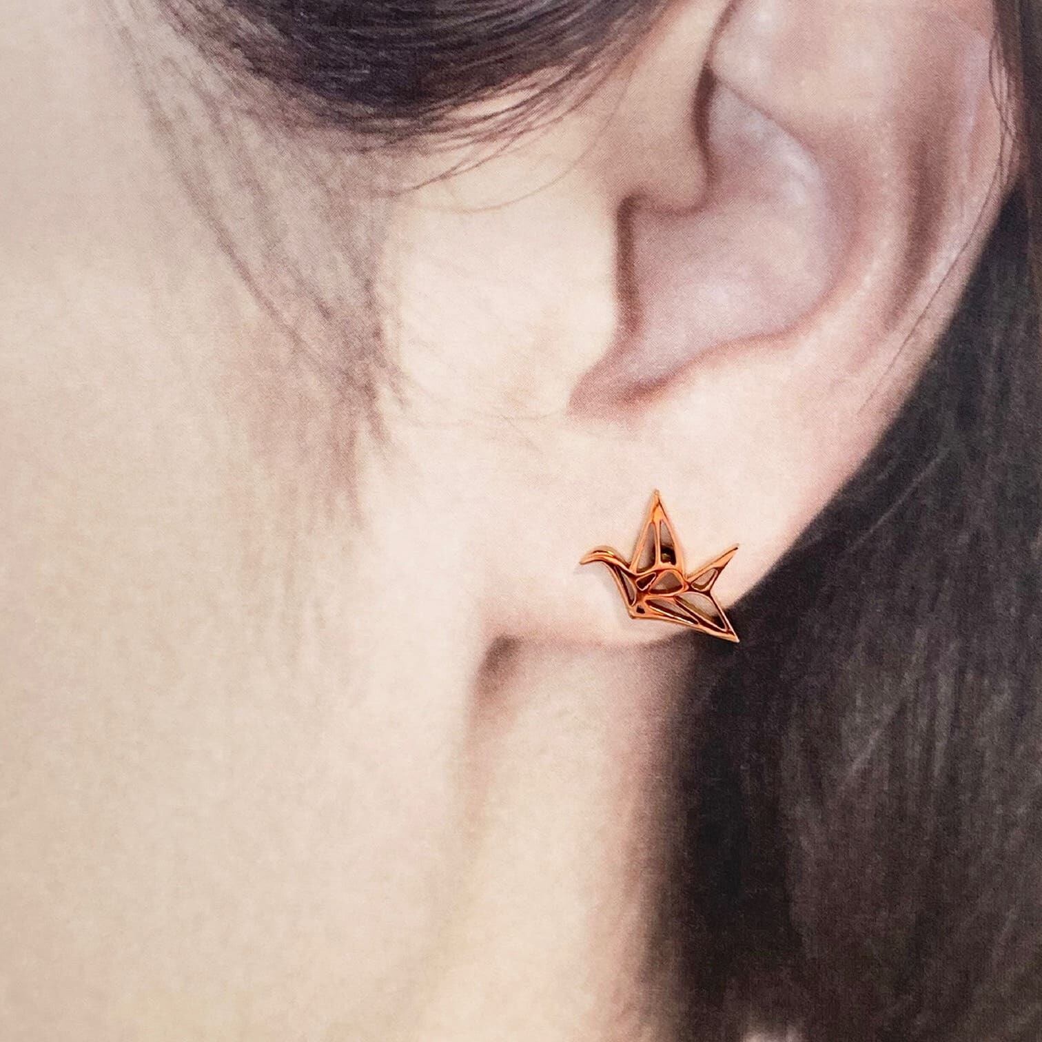 D103 送料無料☆即納 レディース ピアス ステンレス ローズゴールド 鶴 TSURU キャッチ スタッド