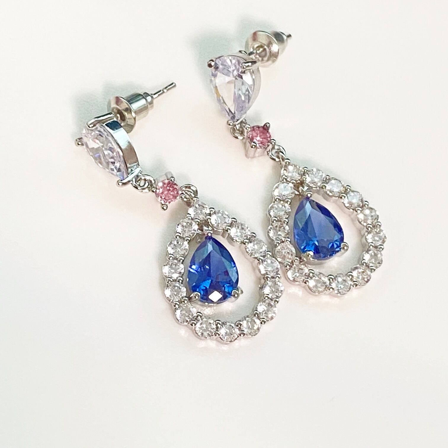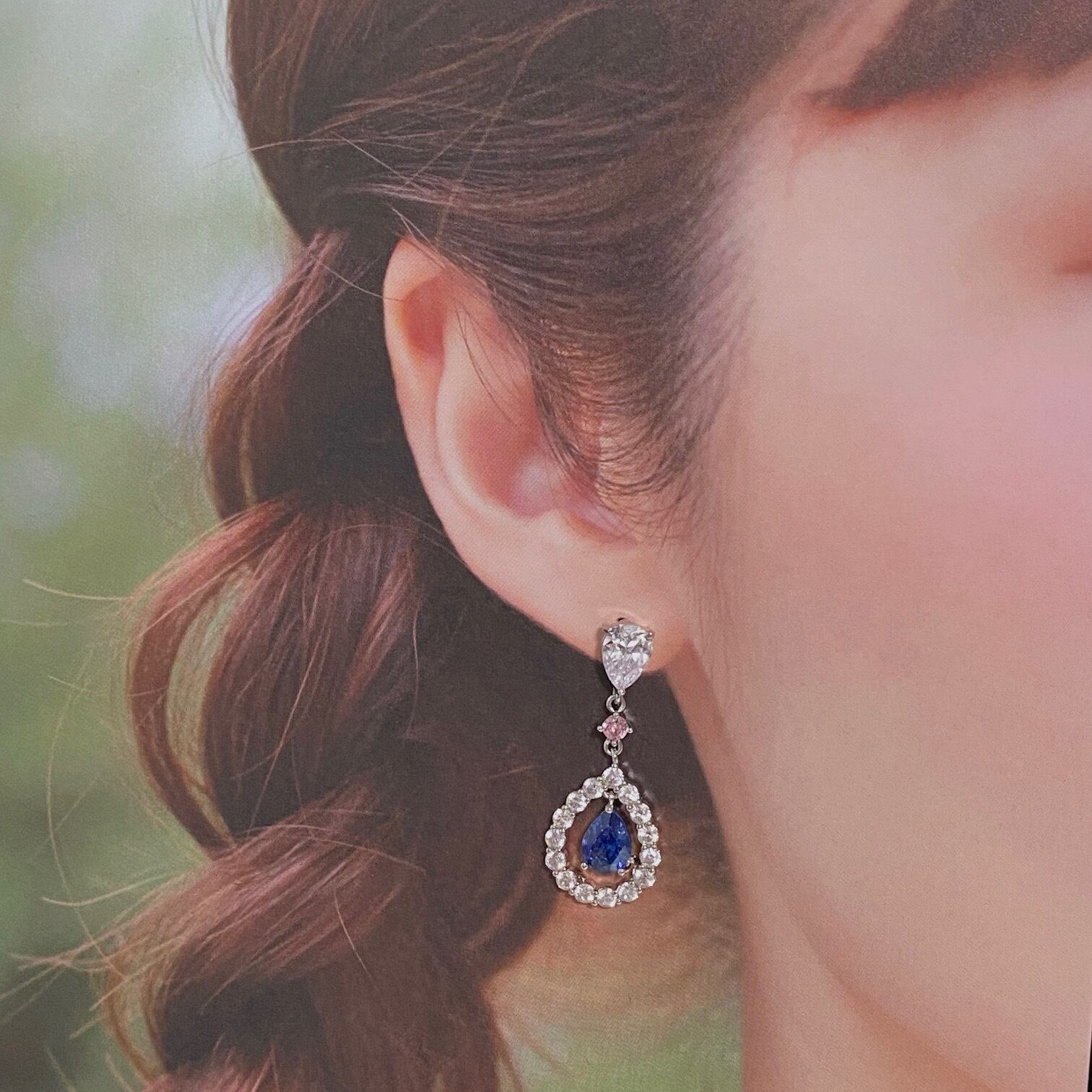 D041 レディース ピアス プリンセス ティアドロップ サファイア ピンク ブルー