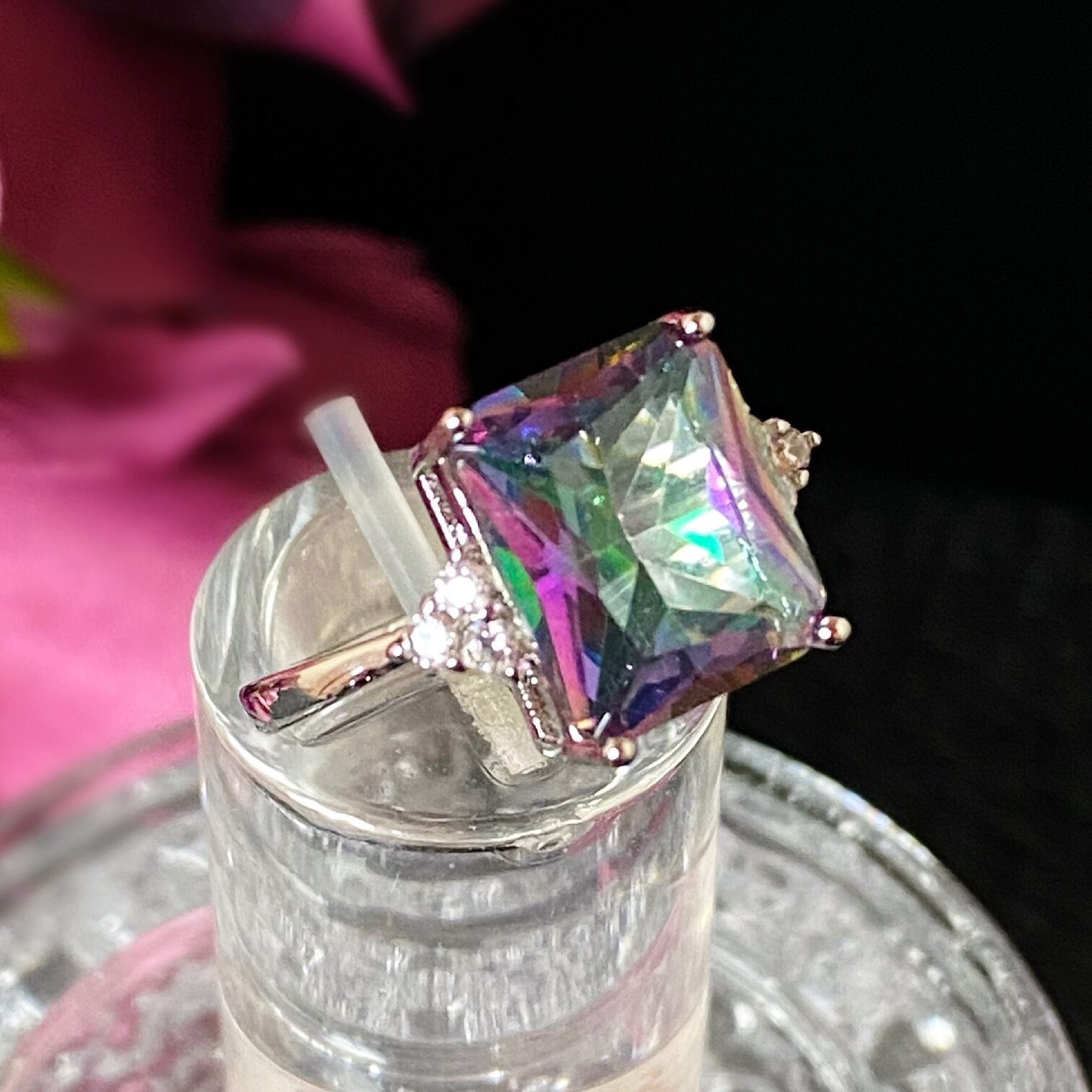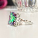 D104 シンプル スクエア レインボートパーズ キュービックジルコニア シルバーリング レディース 指輪