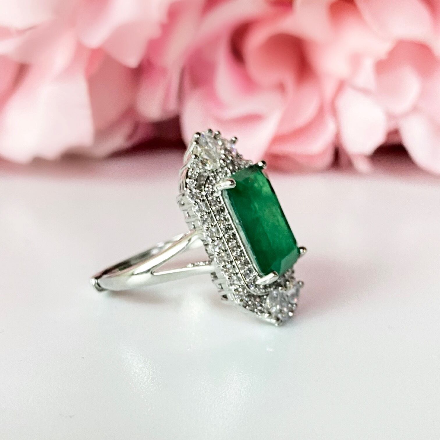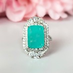 D019 即納☆送料無料 人気デザイン レディース リング 指輪 エメラルド パライバトルマリン カラー ゴージャス おおぶりリング ネオン シルバー ジュエリー フリーサイズ