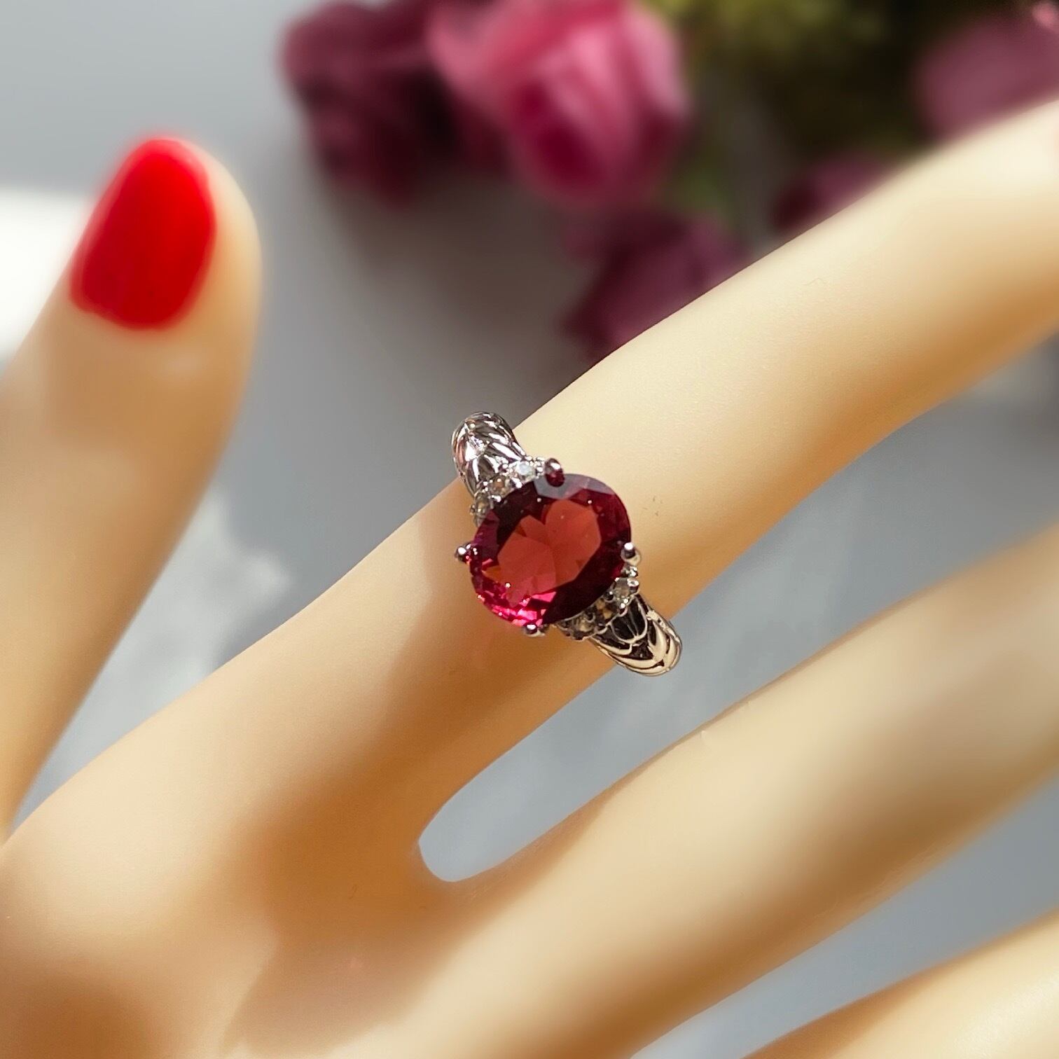 D076 送料無料 人気デザイン ルビースピネル CZダイヤモンド ガーリースタイル スタイリッシュ レディース 指輪 リング