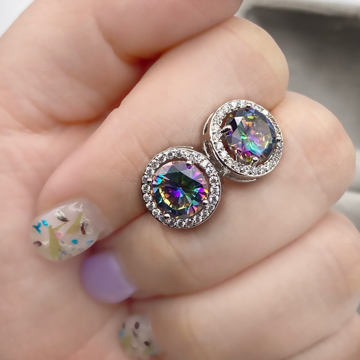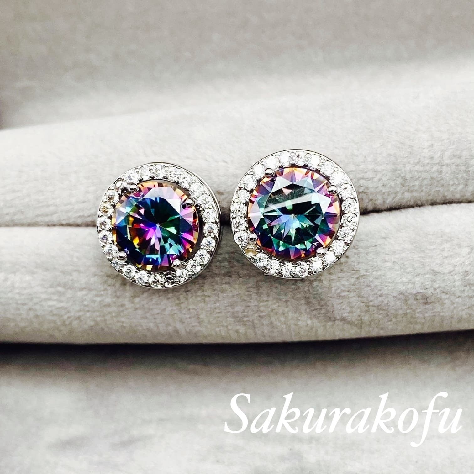 D120 送料無料 レディース ピアス サークル レインボートパーズ ジルコニア シルバー