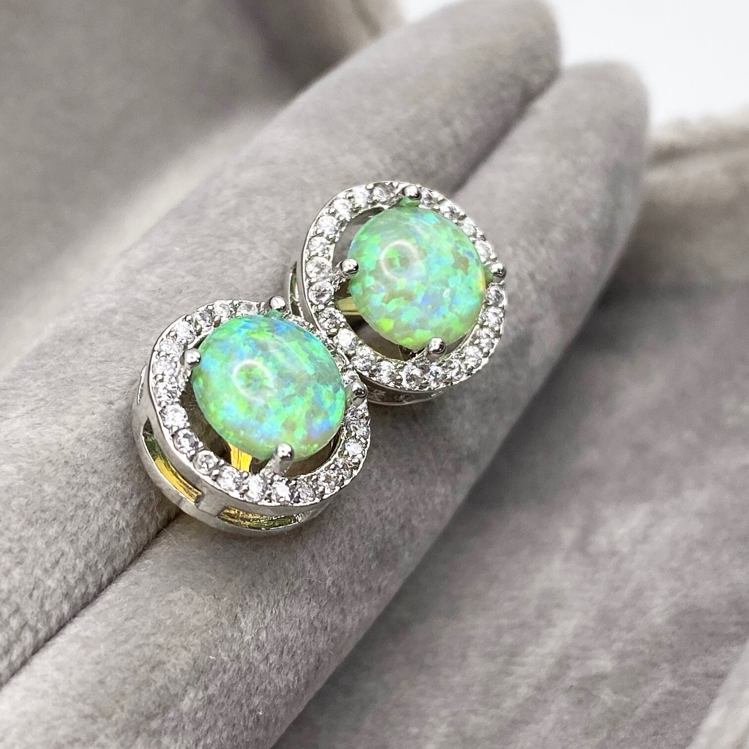 D120 送料無料 レディース ピアス サークル グリーンオパール ジルコニア シルバー