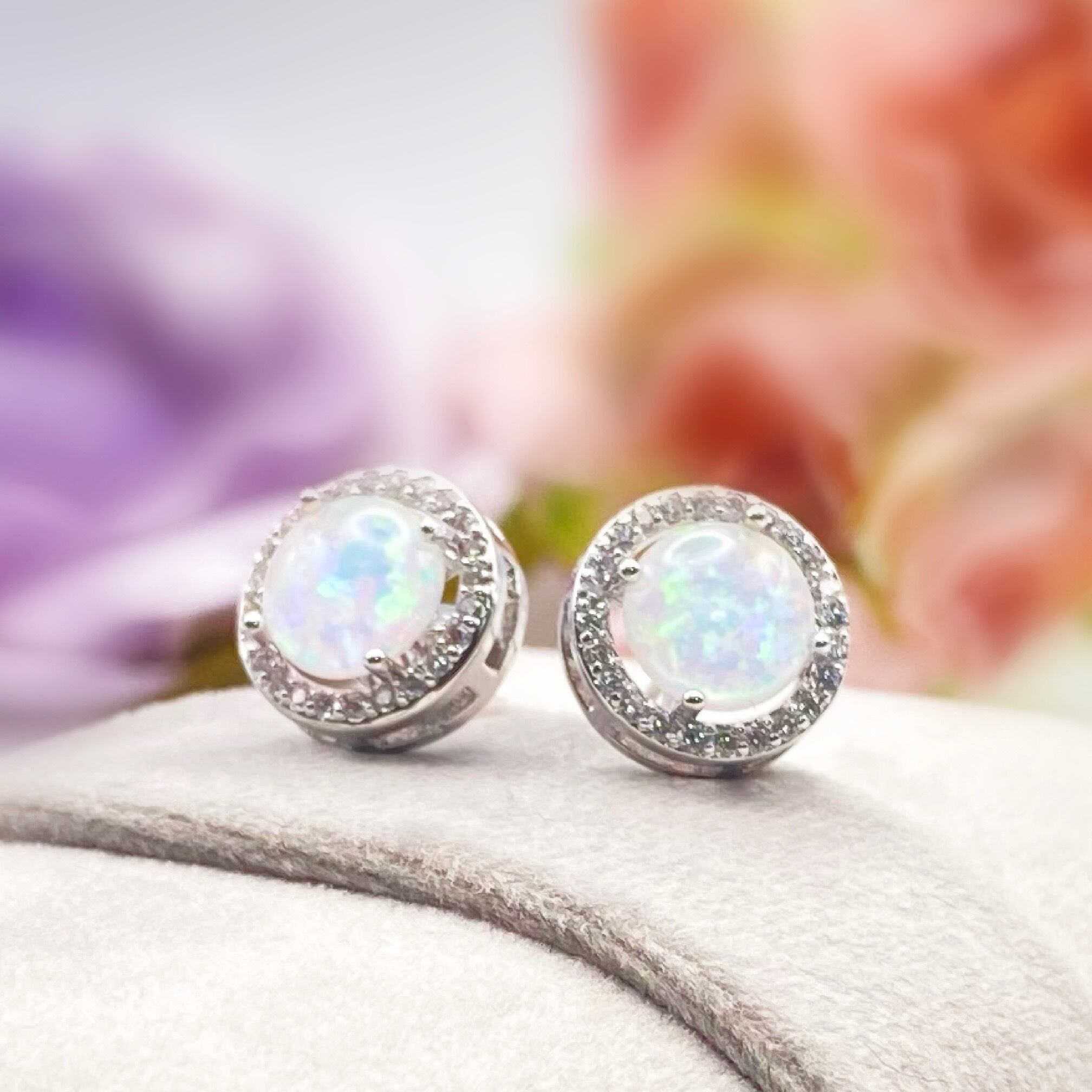 ホワイトオパールのピアス。