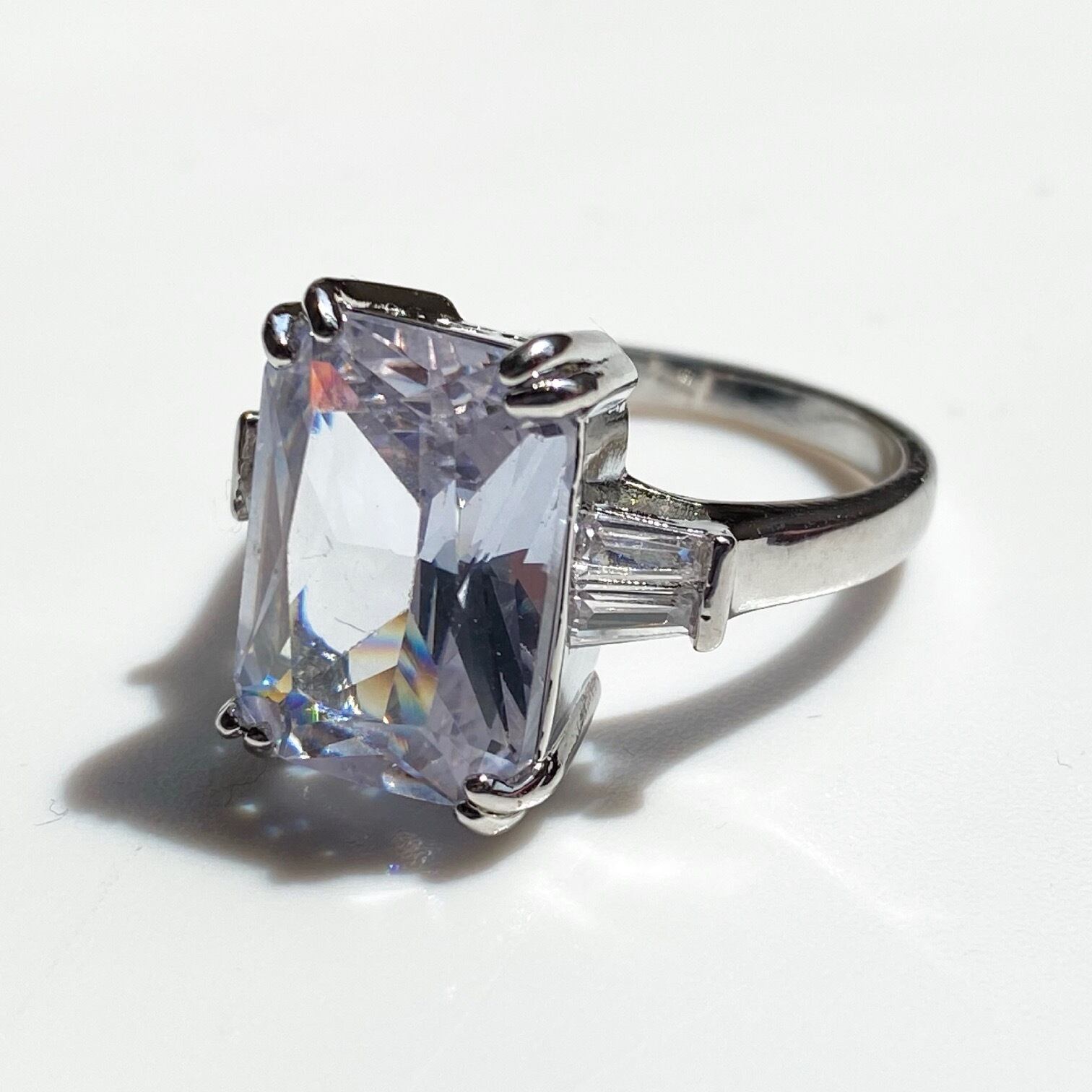 D001 送料無料☆即納 指輪 レディース リング ゴージャス ホワイトサファイア 縦長スクエア テーパー シルバー ロジウムコーティング 人工宝石 ジルコニア