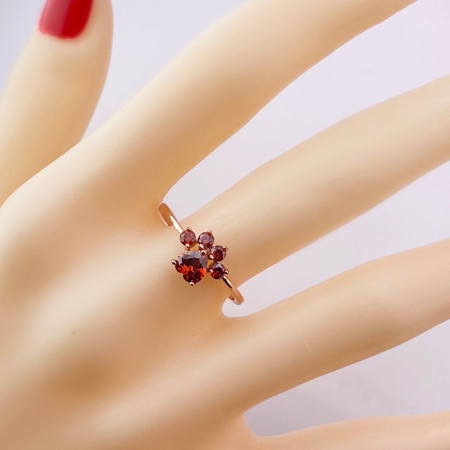 D127 レディース リング 指輪 ガーネット かわいい 肉球 デザイン レッド ストーン おしゃれ ピンクゴールド アクセサリー