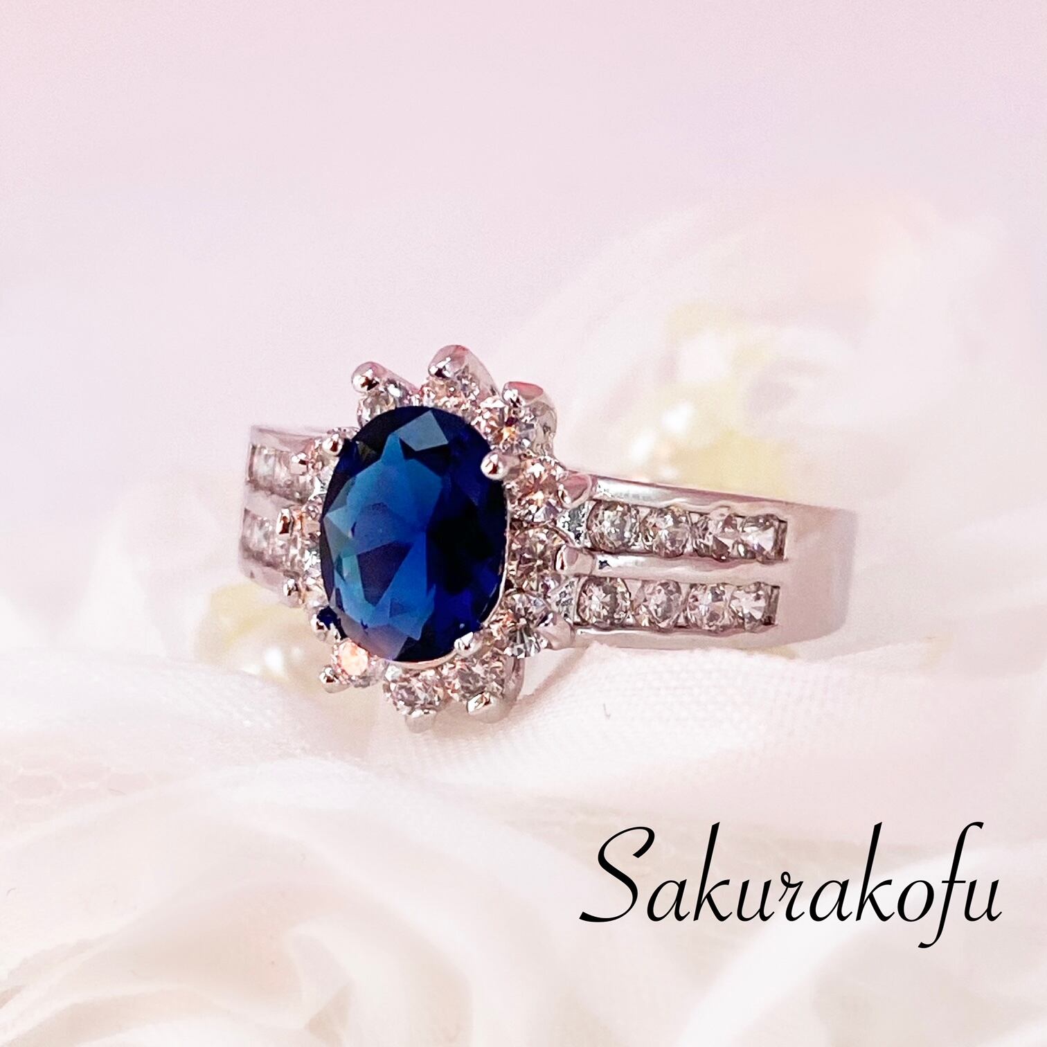 D136 レディース リング 指輪 サファイア キュービックジルコニア クラシカル フラワー リング 人気 ジュエリー