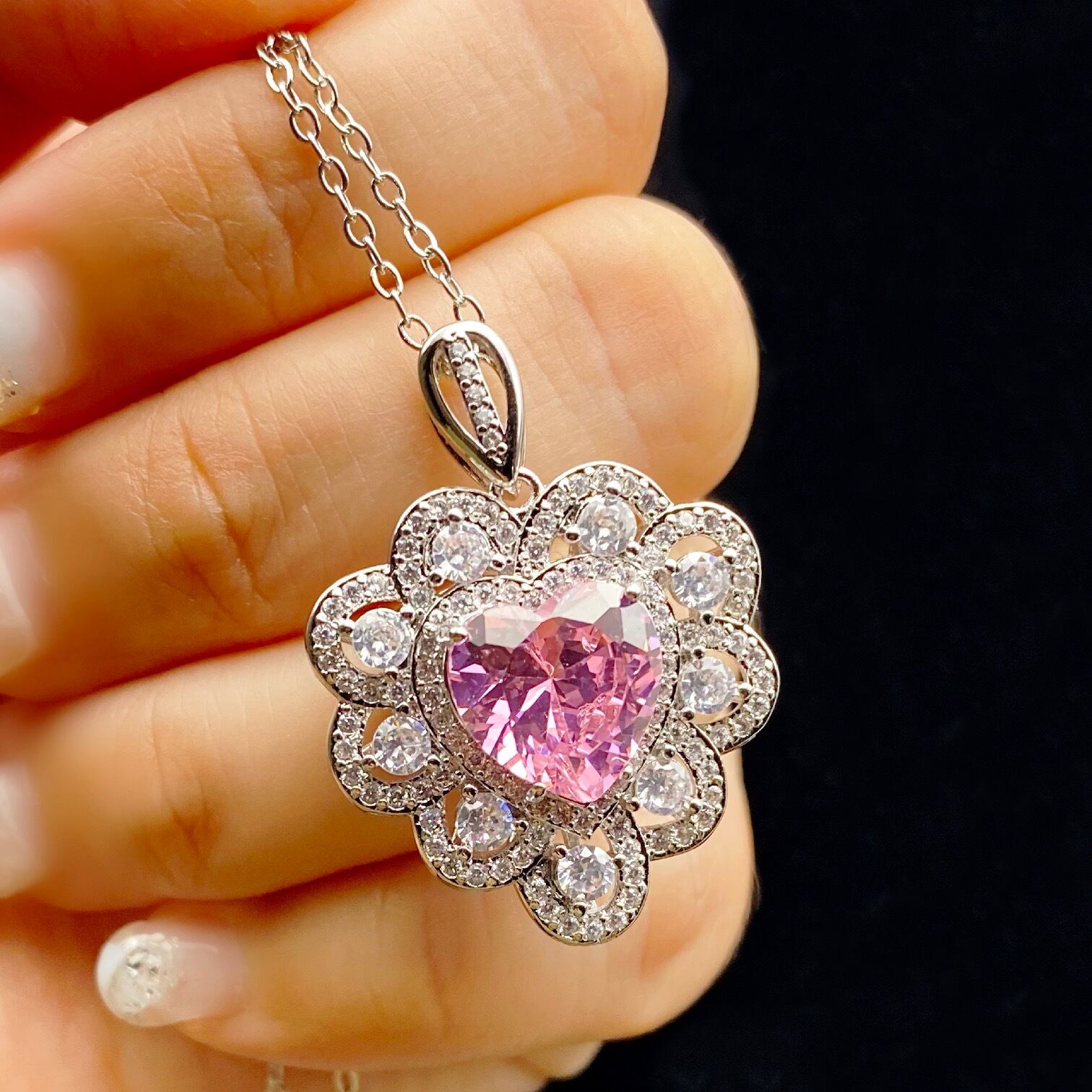D142 送料無料 人気デザイン ピンクサファイア ジルコニア 豪華 ハートデザイン エレガント レディース ネックレスき