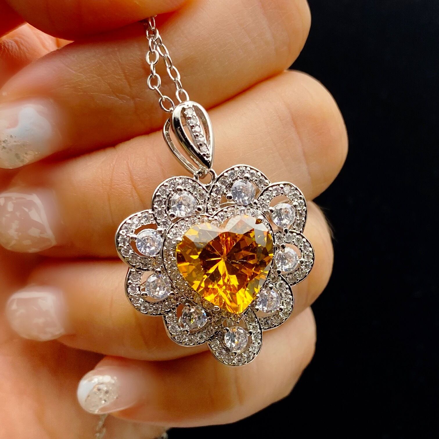 D142 送料無料 人気デザイン イエロートパーズ ジルコニア 豪華 ハートデザイン エレガント レディース ネックレス