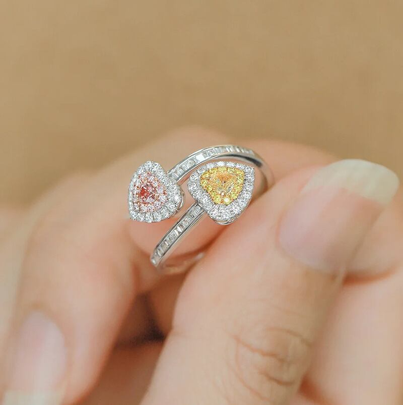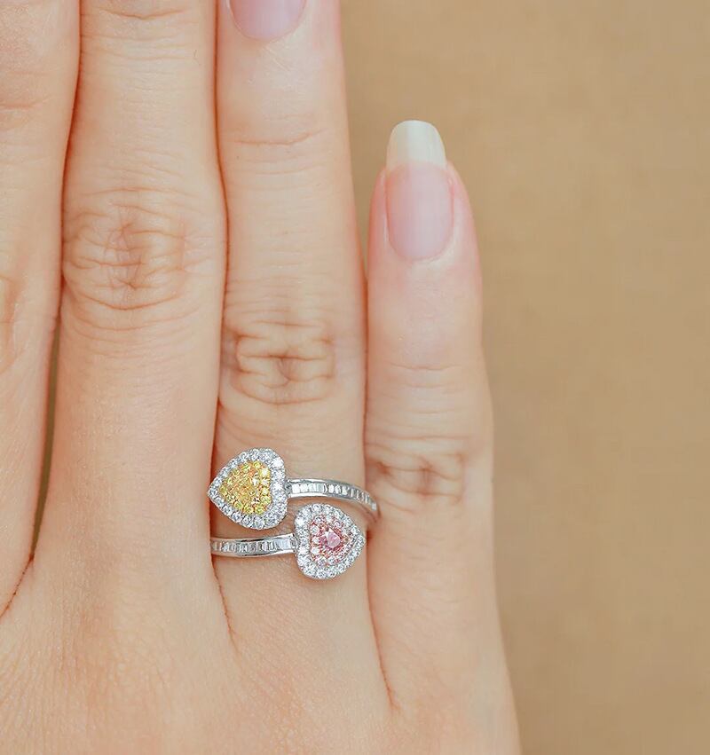 D143 送料無料☆豪華☆美しい輝き レディース 指輪 リング ダブル ハートデザイン ピンクサファイア イエロートパーズ シルバーリング