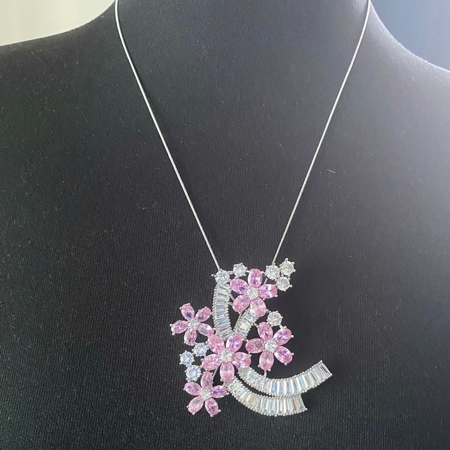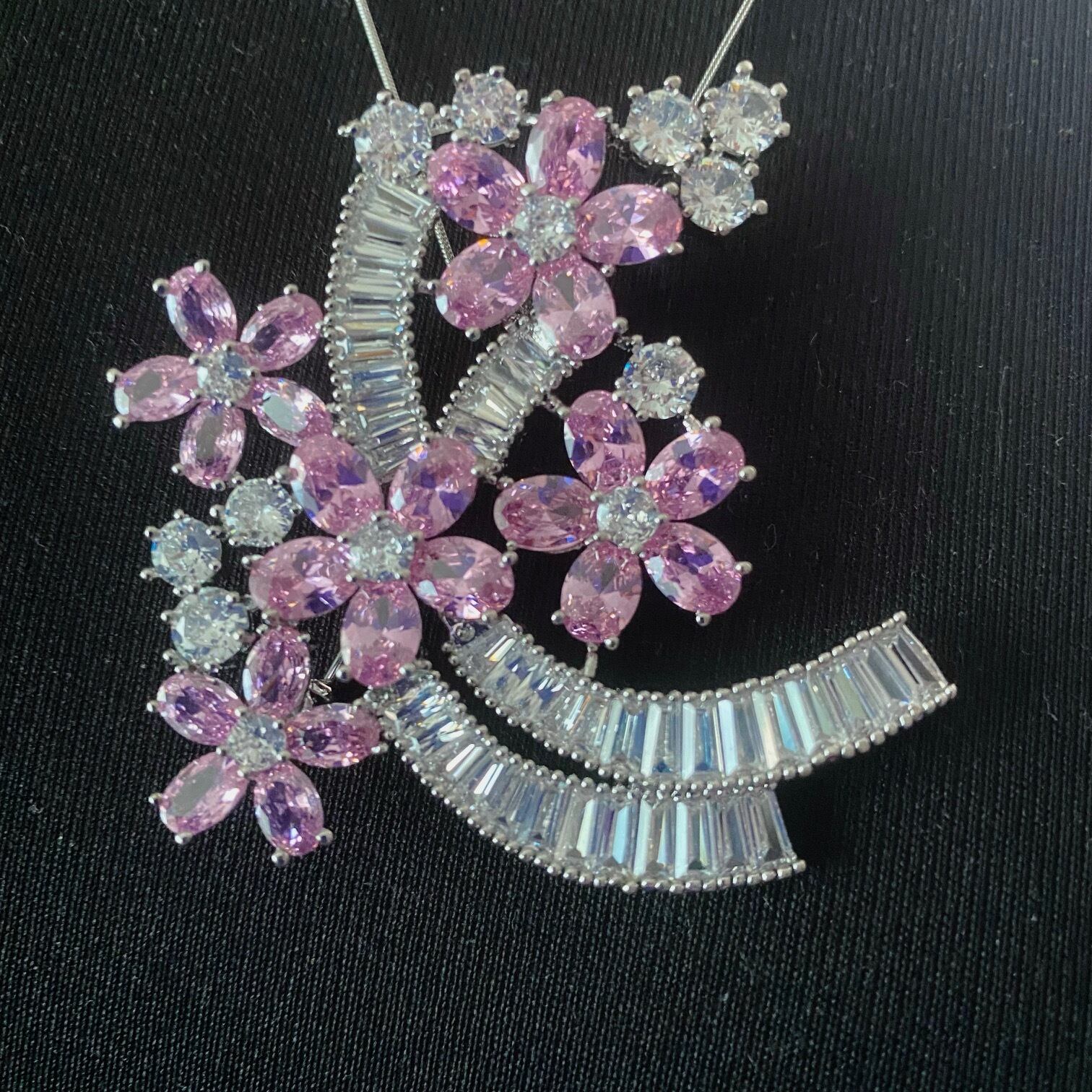 D138 ブローチ ピンクサファイア ジルコニア ハイクオリティ セレブリティ フラワー