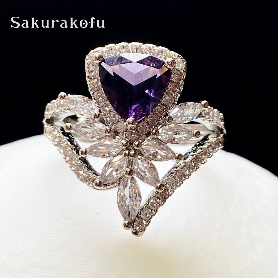 D151 レディース リング 指輪 クラウン ティアラ デザインリング アメジスト ジルコニア フリーサイズ シルバーリング アクセサリー