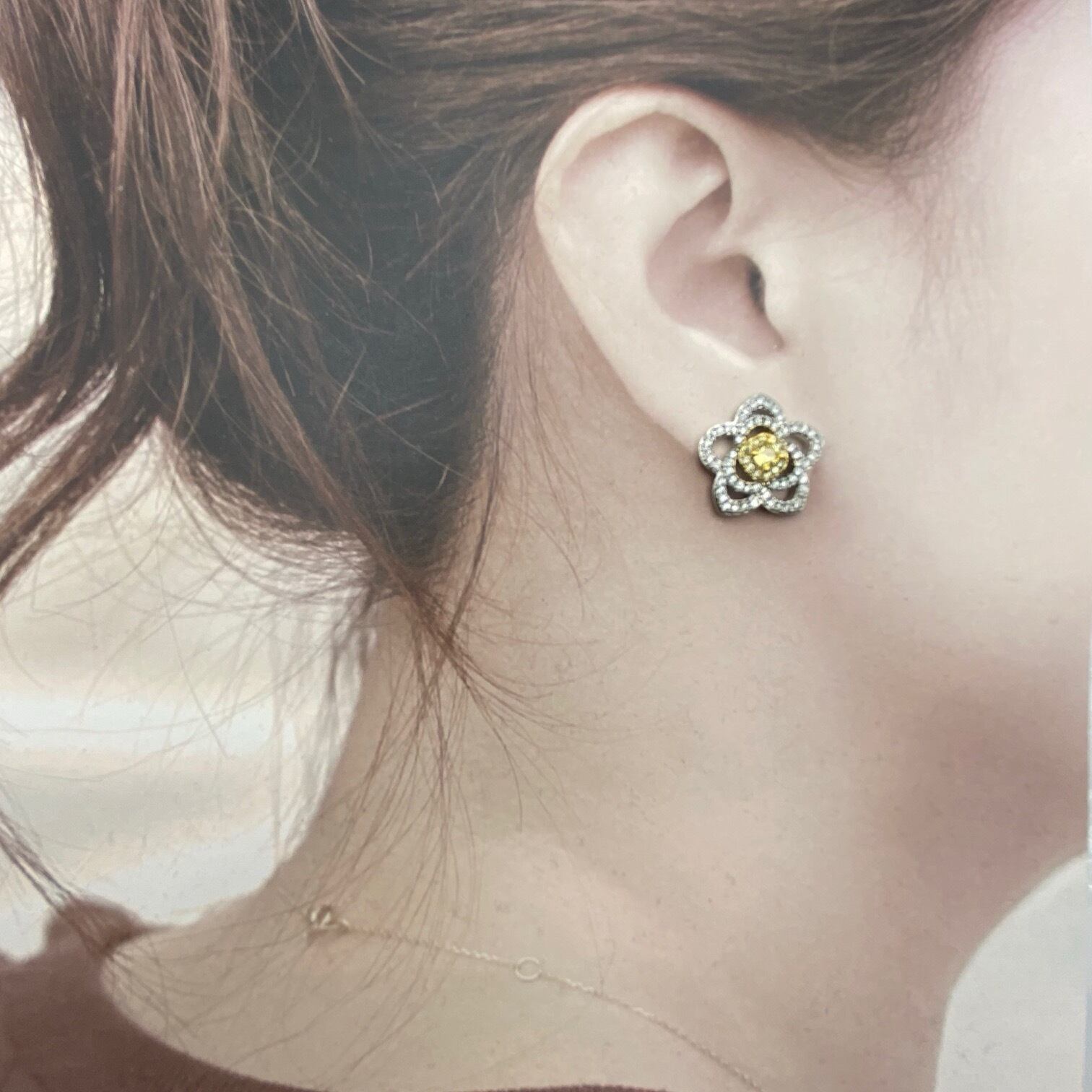 魅力的なお花デザインのピアスをご紹介します。このピアスは高品質のジルコニアで作られており、その輝きはまるで本物の宝石のようです。お花の中心部分には、2つの美しいカラーバリエーションがあります。ピンクとイエローの2つの選択肢が、異なるスタイルや装いに合わせてお楽しみいただけます。